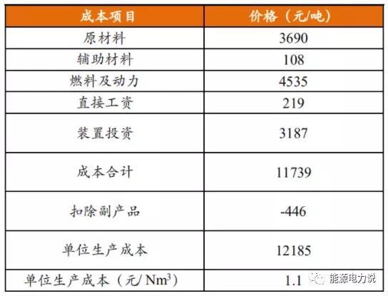 在對(duì)煤氣化制氫成本的測(cè)算中,參考中石化經(jīng)濟(jì)技術(shù)研究院 2015 年對(duì)煤氣化制氫成本的分析,在中石化經(jīng)濟(jì)研究院的成本分析中假定煤炭的價(jià)格是 600 元/噸,水煤漿制氫裝置為 12.4 億元,生產(chǎn)的氫氣規(guī)模為9 × 104m3/h。我們假定: