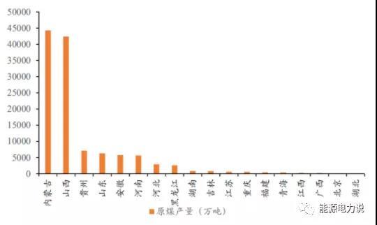 我國(guó)煤炭資源較為豐富且分布廣泛,全國(guó) 32 個(gè)省市(除上海外)都有煤炭資源,但是區(qū)域分布極不均衡,主要的格局是西多東少、北富南貧。其中山西、內(nèi)蒙古、陜西、新疆、貴州等五省煤炭探明儲(chǔ)量占全國(guó)比重達(dá)到 81%以上,且這些地區(qū)的煤質(zhì)普遍較好。由 2018 年上半年全國(guó)各省分原煤產(chǎn)量也可以看出,內(nèi)蒙古、陜西、山西三個(gè)省市產(chǎn)量占全國(guó)的 68%,由此可見(jiàn)西北部煤炭產(chǎn)量具有明顯優(yōu)勢(shì)。