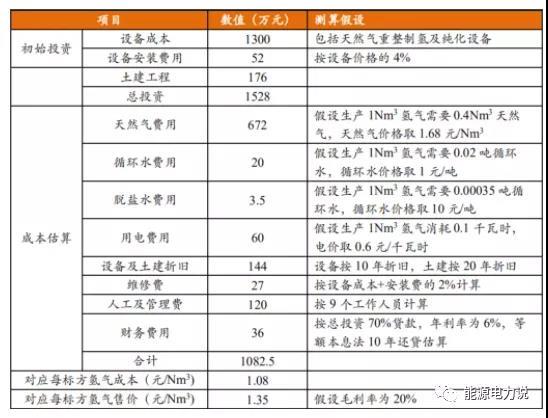 假定制氫規(guī)模 1000 Nm3/h,年產(chǎn)氫 100 萬(wàn) Nm3。測(cè)算過(guò)程及假設(shè)如下: