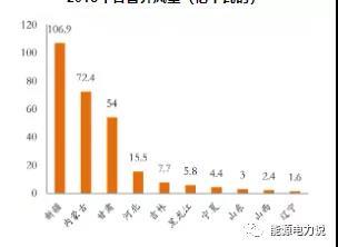 2018年各省棄風(fēng)量(億千瓦時(shí))