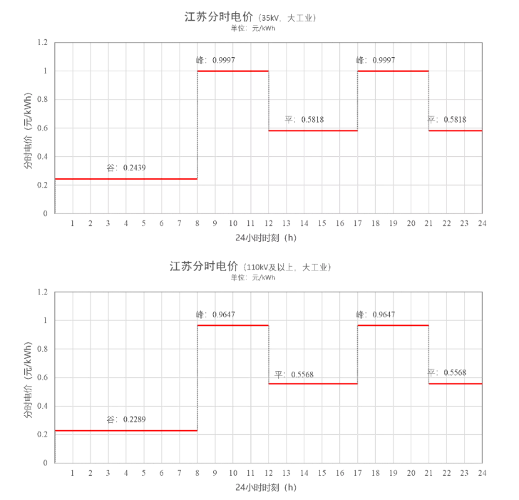 根據6月11日的發(fā)文,以35kV、110kV為例,執(zhí)行的分時電價如下: