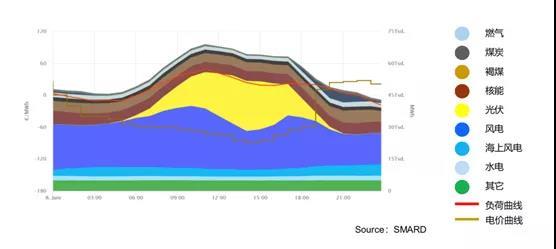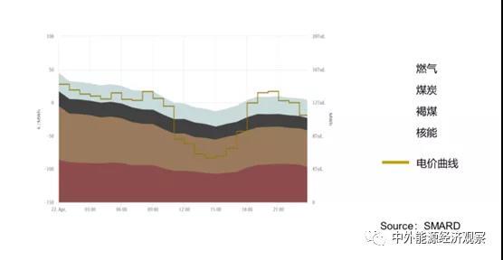 歐洲尤其是德國隨著可再生能源比例增加,現(xiàn)貨市場上出現(xiàn)負(fù)電價的時候越來越多,主要出現(xiàn)在風(fēng)電和光伏發(fā)電同時達(dá)到最高峰的時候,也就是發(fā)電過剩的時候。