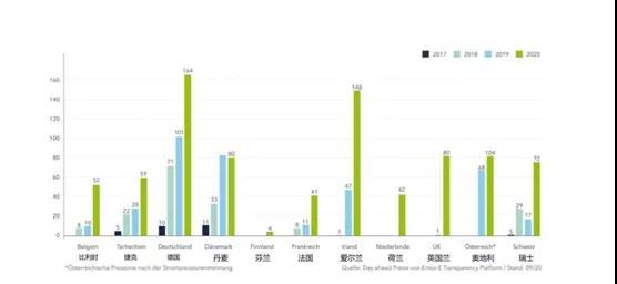 歐洲各國都出現(xiàn)過負(fù)電價,而且是逐年增多。德國2019年有101小時出現(xiàn)過負(fù)電價,2020年9月份已經(jīng)達(dá)到164小時。