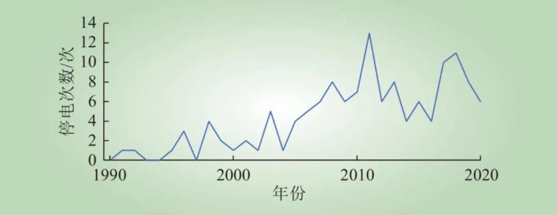 Fig.1 Distribution of blackouts from 1990 to 2020