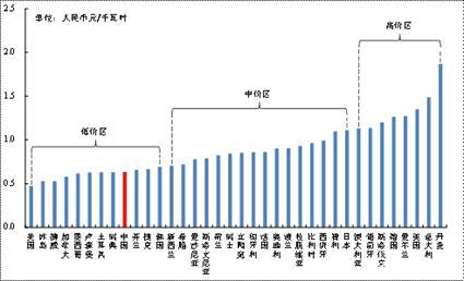 中國與有關(guān)國家電價比較情況(單位:元/千瓦時)