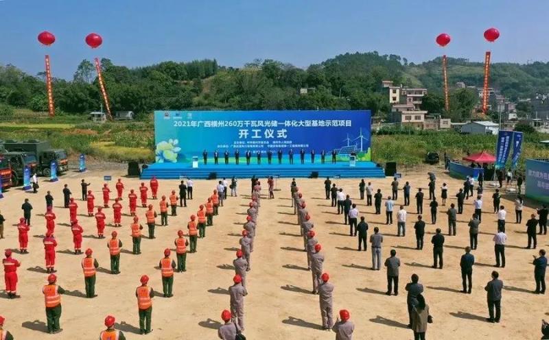 10月25日,2021年廣西橫州260萬千瓦風(fēng)光儲一體化大型基地示范項(xiàng)目開工儀式在橫州市馬山鎮(zhèn)平安村天堂嶺舉行,該示范項(xiàng)目是廣西2021年單體最大的一體化項(xiàng)目,總投資約 128 億元。