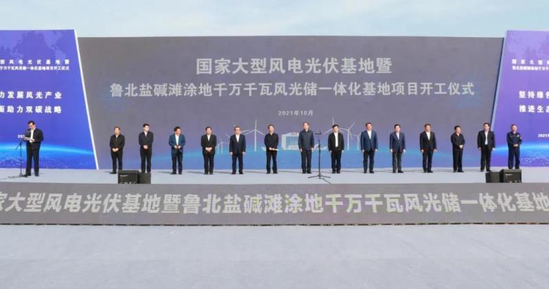10月28日,國家大型風(fēng)電光伏基地暨魯北鹽堿灘涂地千萬千瓦風(fēng)光儲一體化基地,首批總裝機(jī)200萬千瓦集中式光伏發(fā)電項(xiàng)目開工儀式在濰坊舉行。
