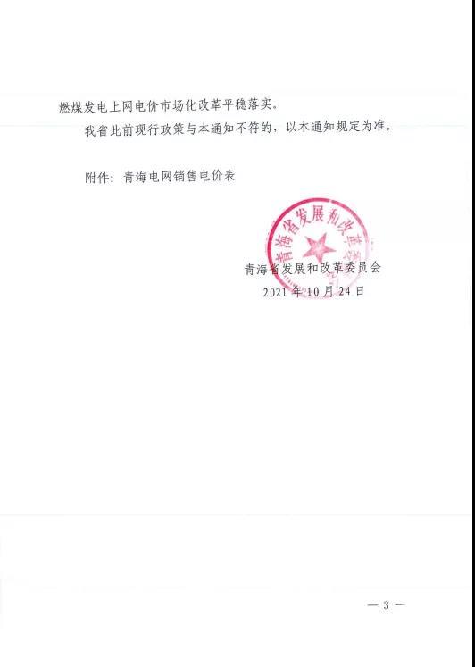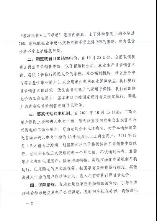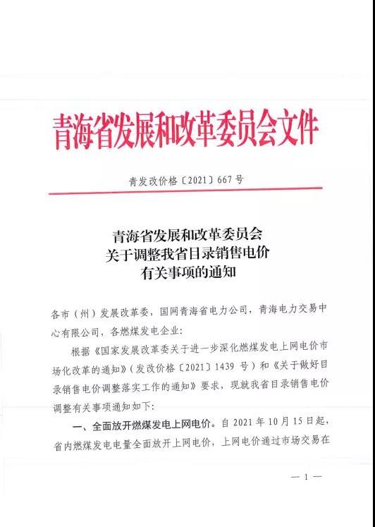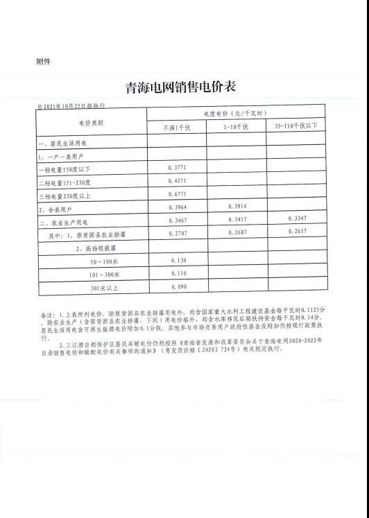 青海:關于調整我省目錄銷售電價有關事項的通知