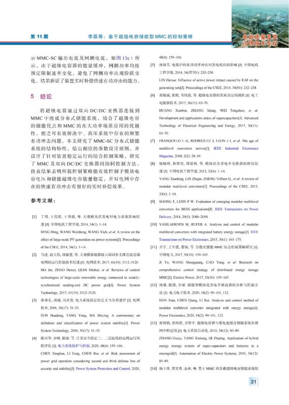 李磊, 陶駿, 朱明星, 等. 基于超級電容儲能型MMC的控制策略[J]. 中國電力, 2020, 53(11): 15-22.