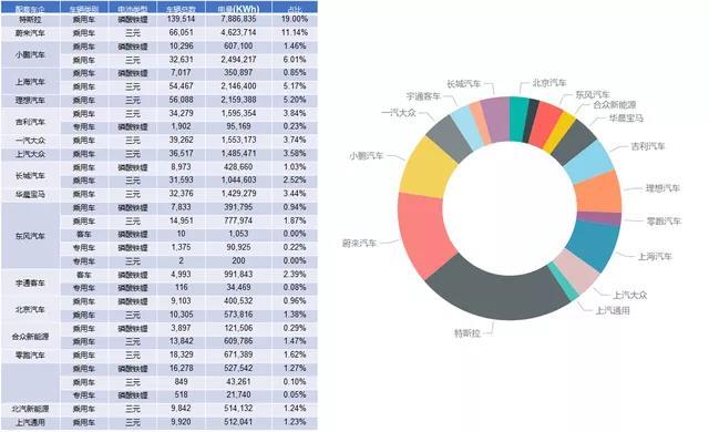 在這里不便多說,大家可以看圖來查詢數(shù)據(jù)。這個表格信息比較多,大家主要看一下鐵鋰和三元的分配情況。