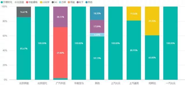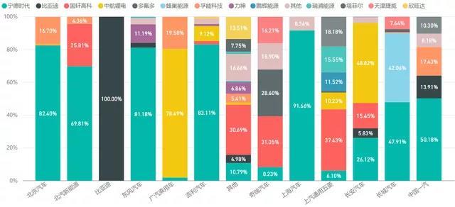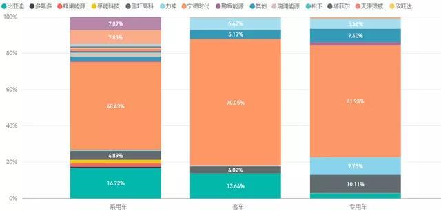 圖1 直觀反映主要的電池企業(yè)應(yīng)用在不同車型的比例