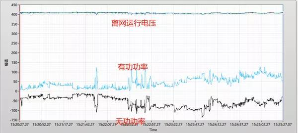 圖2 多臺PCS離網(wǎng)并列運行電網(wǎng)及功率