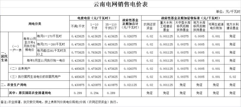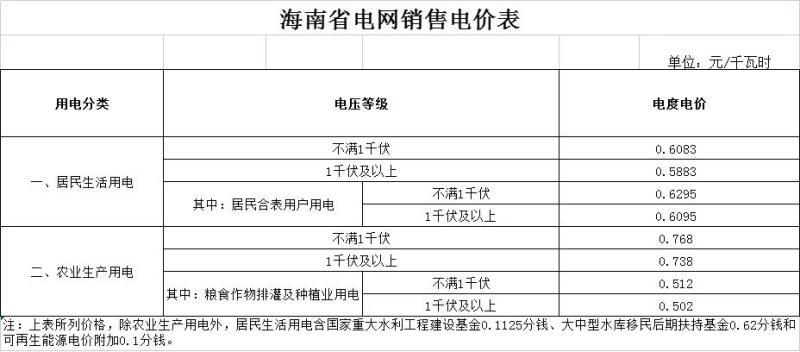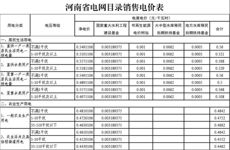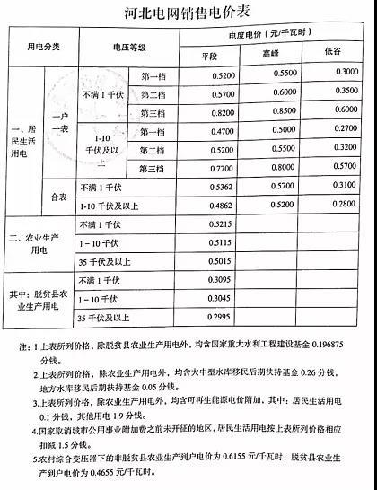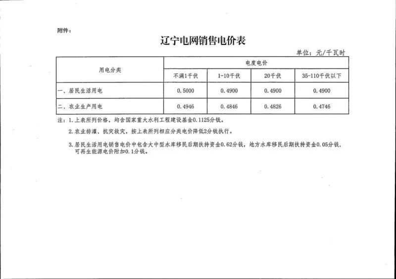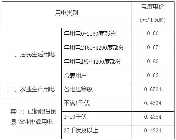 注:1、上表所列價(jià)格,除已摘帽貧困縣農(nóng)業(yè)排灌用電外,均含國(guó)家重大水利工程建設(shè)基金0.15525分錢。