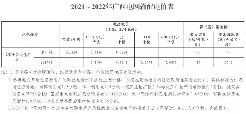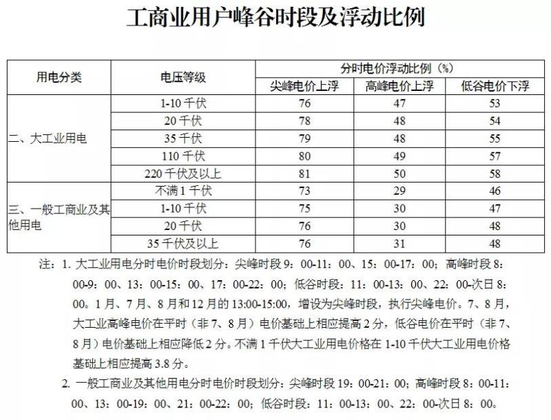 1.表中各電價(jià)含增值稅、線損、交叉補(bǔ)貼及區(qū)域電網(wǎng)容量電價(jià),不含政府性基金及附加。