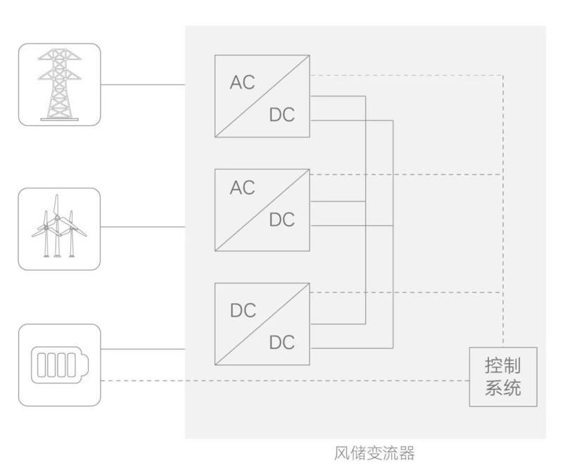 2021年CWP國際風(fēng)能展中,陽光電源發(fā)布風(fēng)儲(chǔ)一體變流器,該變流器由6.6MW雙饋風(fēng)電變流器直流側(cè)配比10%功率的儲(chǔ)能變流單元,通過風(fēng)電變流與儲(chǔ)能變換一體化控制,深度融合風(fēng)電變流與儲(chǔ)能功能的場景化應(yīng)用。