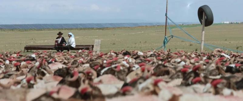 板上發(fā)電、板下牧羊,現(xiàn)代科技與傳統(tǒng)自然和諧共生的巨幅畫卷在青藏高原鋪陳開來。