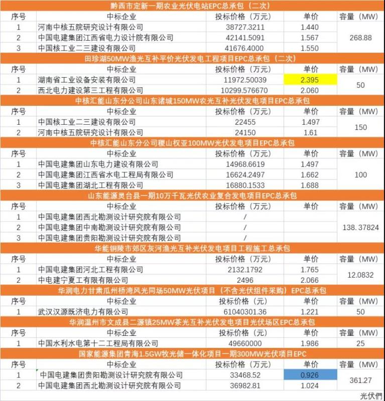 根據(jù)招標公告來看,這些EPC項目均為不含組件、逆變器等關鍵設備的小EPC項目。從報價來看,主要集中在0.926元/W-2.395元/W之間。最高價與最低價相差1.469元每瓦。