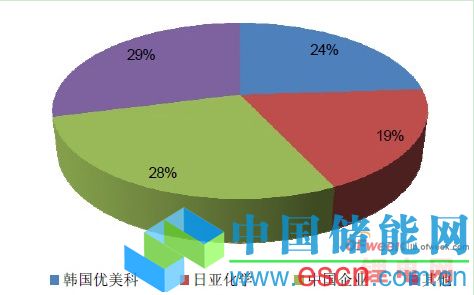 圖表2:全球鋰電池正極材料競(jìng)爭(zhēng)格局(2011)