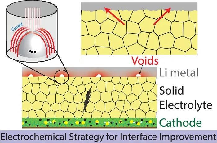 好消息是,ORNL 科學家們發(fā)現(xiàn),在結(jié)合了鋰金屬陽極和固體電解質(zhì)后,他們就能夠通過施加較短的高壓電化學脈沖,來有效地消除這些空隙。