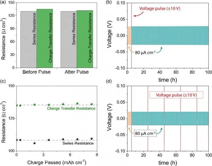 電壓脈沖可以讓電流包圍并消除空隙,從而在材料接口處形成更廣泛的接觸。更棒的是,這套方案對于電池本身也沒有不利影響。