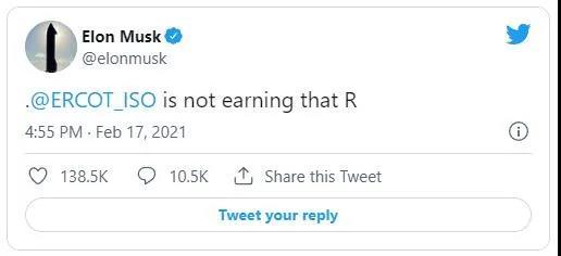 特斯拉CEO埃隆·馬斯克(Elon Musk)當時在推特上批評得州的電力運營商“沒有R”——R是得州電力可靠性委員會(Electric Reliability Council of Texas)中Reliability的縮寫,意指得州電網(wǎng)供電可靠性不足。馬斯克本人在2020年12月從加州搬到了得州,并且陸續(xù)將很多業(yè)務也搬到得州,包括在得州首府奧斯汀附近建設新的特斯拉超級工廠,在博卡奇卡建設SpaceX發(fā)射場。