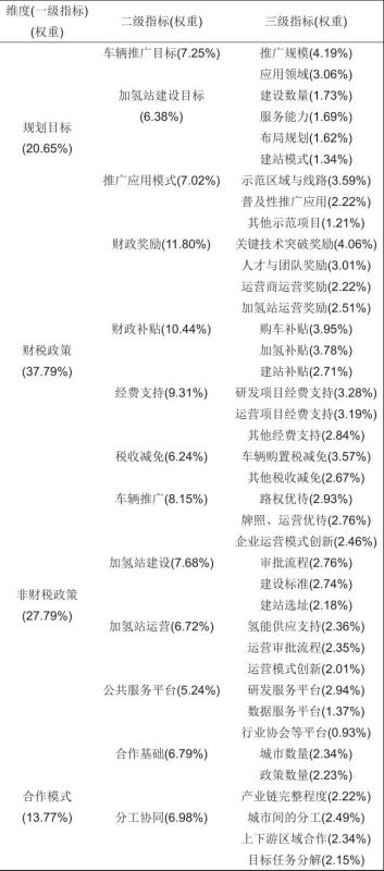 表3中列舉的20個城市,包括4個直轄市、8個省會城市和8個非省會城市,分布在全國全部七大區(qū)域(華北4個、華東6個、華南2個、華中2個、東北2個、西北2個、西南2個)的18個省份。從在一定程度上反映政策效果的市場化水平看,在燃料電池汽車推廣應用數量列全國前十位的城市中,有2個推廣數量較高的城市(深圳和濰坊)未被選入。深圳未選入的原因主要為,該市雖曾出現(xiàn)過短期的氫燃料電池物流車推廣熱潮,2019年其累計推廣數量即已位居全國城市總推廣量前三(高達774輛),但因當地無加氫條件,這些車輛實際大多未在深圳運營;從產業(yè)基礎看,深圳以發(fā)展電動汽車為主,近年來未出臺過燃料電池汽車支持政策,2019年后當地亦無新增燃料電池車輛推廣。與深圳未選入的原因不同,濰坊的推廣應用總量高于同在山東城市群的青島和濟南,出臺的政策數量也不少,但考慮到青島為副省級城市,在2021年上半年全國637輛燃料電池汽車使用涉及的22個城市中,青島的推廣應用量從2020年上半年的第八位躍居為第一位(191輛),且遠高于其他城市,因此對于山東城市群,除牽頭城市濟南外,也把青島選入進行評價。增選的其他幾個城市中,天津、重慶為近年來在加快發(fā)展燃料電池汽車的直轄市;廣州為近年來加快布局燃料電池汽車的省會城市;西安所在的陜西城市群雖尚未申報,但西安是燃料電池汽車接入量位居全國所有城市第17位的省會城市,在燃料電池汽車政策和市場發(fā)展相對較為薄弱的西北地區(qū),有一定代表性。