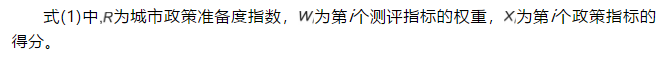 對城市政策水平調查研究的一個重要目標就是測量和評價到現(xiàn)階段的政策準備度(R)。本文評價部分采用李克特(Likert)5點量表尺度對政策指標打分,采用算術加權平均法來進行計算,如式(1)所示。