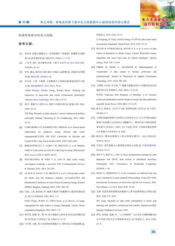 林正沖, 戚思睿, 茍吉偉, 等. 新電改形勢下集中化大型數(shù)據(jù)中心戰(zhàn)略投資和商業(yè)模式[J]. 中國電力, 2021, 54(11): 37-46.