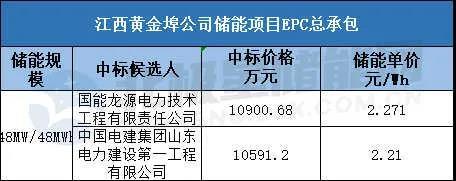 中國儲能網(wǎng)訊:11月15日國家能源集團(tuán)黃金埠發(fā)電有限公司發(fā)布儲能項目EPC總承包中標(biāo)候選人公示,第一候選人為報價10900.68萬的國能龍源電力技術(shù)工程有限責(zé)任公司,儲能單價達(dá)2.271元/Wh。第二候選人為報價10591.2萬的中國電建集團(tuán)山東電力建設(shè)第一工程有限公司,儲能單價達(dá)2.21元/Wh。