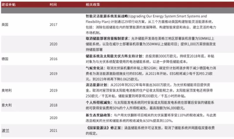 圖:歐洲各國(guó)均出臺(tái)政策促進(jìn)儲(chǔ)能市場(chǎng)發(fā)展
