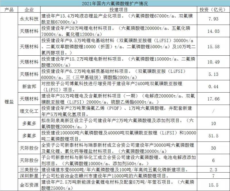 由于供需矛盾日益緊張,具備六氟磷酸鋰生產(chǎn)能力的企業(yè),都紛紛開始加碼擴產(chǎn)。