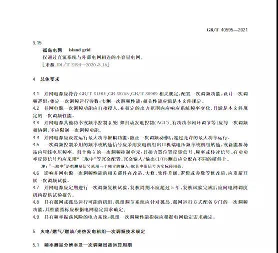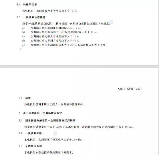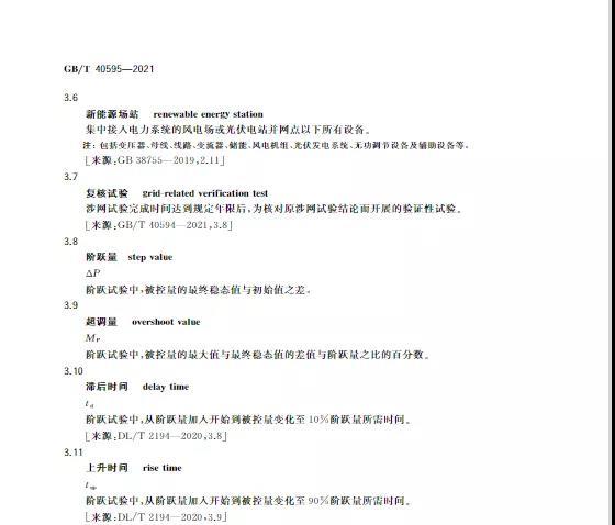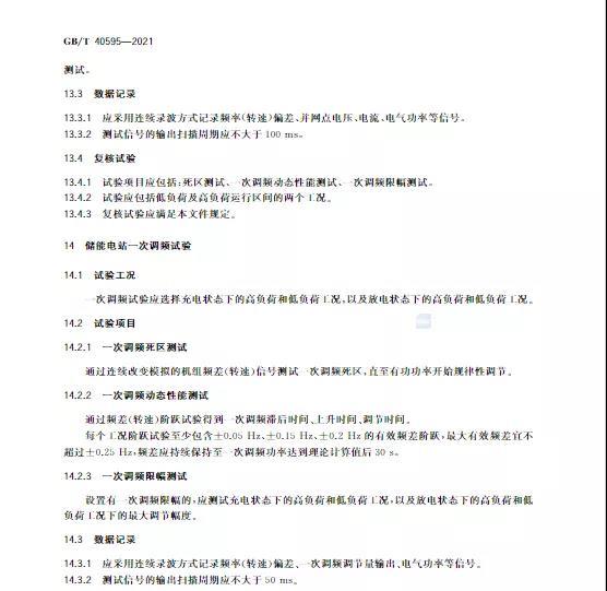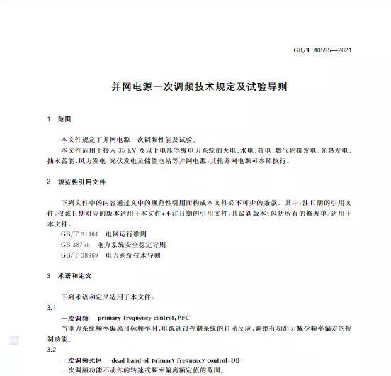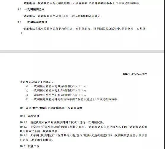 中國儲(chǔ)能網(wǎng)訊:10月11日,國家標(biāo)準(zhǔn)《并網(wǎng)電源一次調(diào)頻技術(shù)規(guī)定及試驗(yàn)導(dǎo)體》GB/T 40595-2021正式發(fā)布并且于2022年5月1日起正式實(shí)施。文件明確:接入35kV及以上電壓等級(jí)的儲(chǔ)能電站、風(fēng)電、光伏等并網(wǎng)電源要按照該文件執(zhí)行。其中儲(chǔ)能電站一次調(diào)頻動(dòng)態(tài)性能應(yīng)滿足下列規(guī)定: