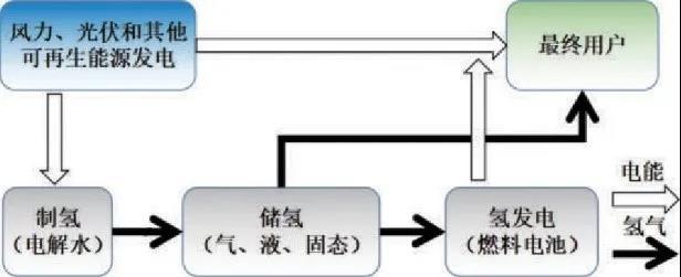 氫儲(chǔ)能是將電能轉(zhuǎn)化為高能量密度的燃料氣體的技術(shù)。通過將風(fēng)力發(fā)電、太陽能發(fā)電以及部分核能發(fā)電的剩余電力,也就是富余電力通過電解水制成氫,通過電或者氣再到電的轉(zhuǎn)換環(huán)節(jié),讓電力系統(tǒng)和氣體系統(tǒng)之間的能量雙向流動(dòng),成為一種可能性。