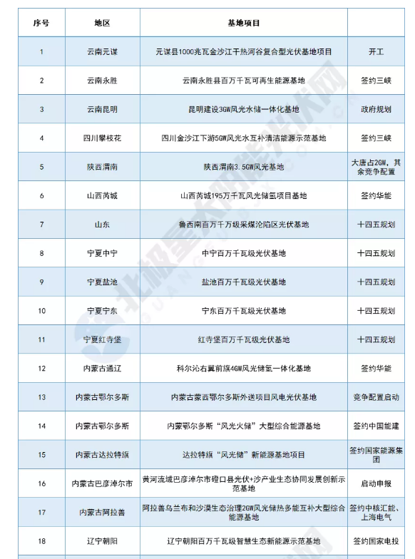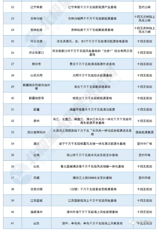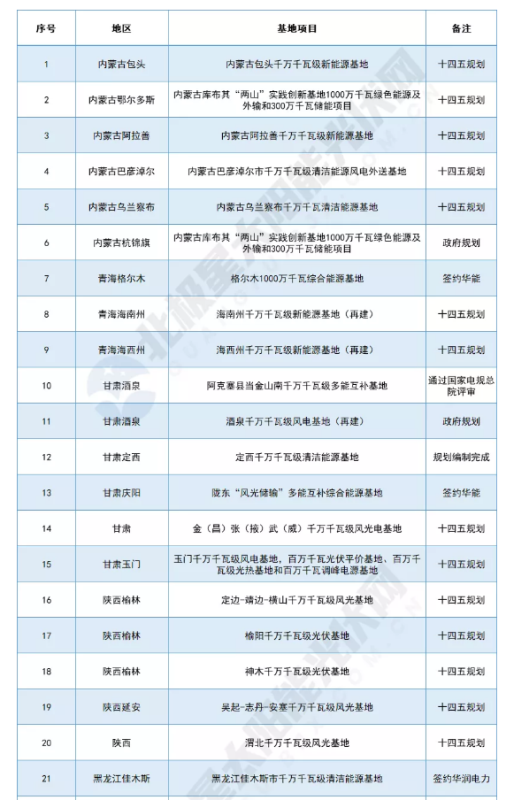 中國儲能網(wǎng)訊:據(jù)北極星太陽能光伏網(wǎng)據(jù)各省十四五規(guī)劃及相關(guān)文件不完全統(tǒng)計:目前各?。▍^(qū)/市)規(guī)劃百萬千瓦大基地項(xiàng)目47個,千萬千瓦大基地項(xiàng)目41個,如果以上項(xiàng)目規(guī)劃全部落地,裝機(jī)規(guī)模將遠(yuǎn)遠(yuǎn)超過400GW,并且以上大基地項(xiàng)目區(qū)域位置,基本與“十四五”期間我國將建設(shè)九大大型清潔能源基地的分布位置相吻合。