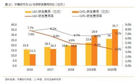 LG化學的研發(fā)費用,2016、2017年還高于寧德時代,但到了2019年已經(jīng)被寧德時代反超。LG化學研發(fā)費用率占比直線下滑。