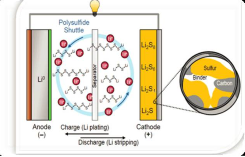 相關(guān)資料顯示,高能量密度鋰硫電池是一種以硫作為正極活性物質(zhì)的蓄電池。從理論上來說,相同尺寸的情況下,鋰硫電池的容量可達(dá)傳統(tǒng)鋰電池的8倍,但卻存在電導(dǎo)率低、中間產(chǎn)物易溶于電解液等問題。
