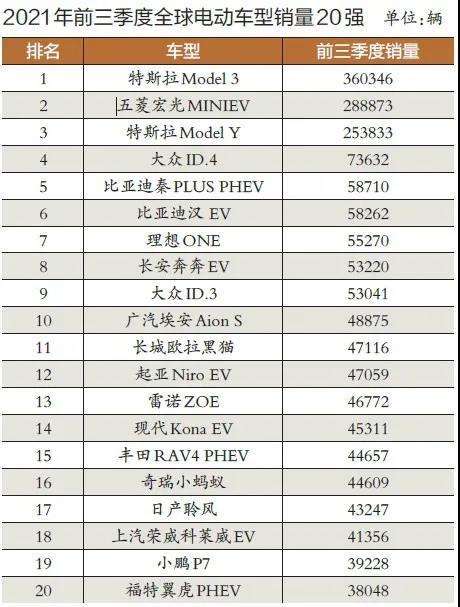 整體來看,前三季度全球電動(dòng)車型銷量20強(qiáng)榜單中,中國品牌車型占一半。其中,與五菱宏光MINIEV一樣走小型電動(dòng)汽車路線的還有長(zhǎng)安奔奔EV、長(zhǎng)城歐拉黑貓、奇瑞小螞蟻等,主要依賴中國市場(chǎng),成績(jī)也不錯(cuò)。