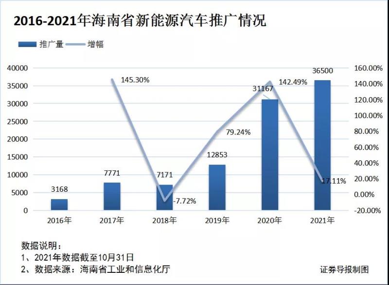 隨著海南省持續(xù)加大新能源汽車推廣力度,全省新能源汽車應(yīng)用市場穩(wěn)步提速。證券導(dǎo)報(bào)記者從海南省工業(yè)和信息化廳獲悉,截至10月底,海南全省新能源汽車保有量為10.13萬輛,占汽車保有量6.11%,較2020年底數(shù)據(jù)提升約1.8個(gè)百分點(diǎn),高出全國平均水平(2.28%)1.7倍。今年我省已推廣新能源汽車3.65萬輛,較上年提升約17.11%。快速增長的新能源汽車市場為發(fā)展換電模式提供了廣闊的市場空間。