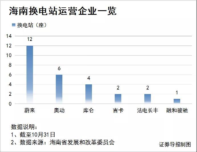 按運(yùn)營企業(yè)劃分,現(xiàn)有6家新能源企業(yè)在瓊布局換電模式。具體來看,蔚來在瓊累計(jì)建成換電站12座、奧動(dòng)6座、庫侖4座、吉卡2座、法電長豐2座、融和駿馳1座。