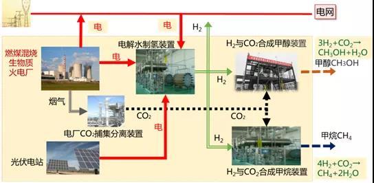 二是通過二氧化碳直接與氫氣合成,生產(chǎn)甲烷、甲醇等便于存儲、運輸?shù)木G色燃料或作為重要化工原料產(chǎn)品,一方面可規(guī)避大規(guī)模二氧化碳捕集后壓縮及封存的高額成本投入,另一方面形成合理可行的產(chǎn)品收益模式,有利于火電企業(yè)推廣應(yīng)用二氧化碳捕集與利用技術(shù);在促進(jìn)火電行業(yè)碳減排及轉(zhuǎn)型發(fā)展的同時,所生產(chǎn)的氫氣本身及與二氧化碳、氮氣合成生成的綠色燃料化工原料產(chǎn)品,也可為能源相關(guān)領(lǐng)域化石燃料和原料替代提供一定的來源補充。