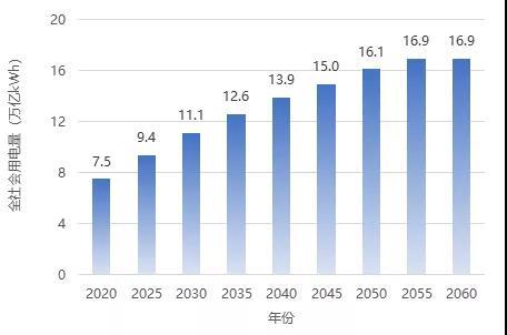 圖2 2020-2060年我國全社會用電總量變化趨勢