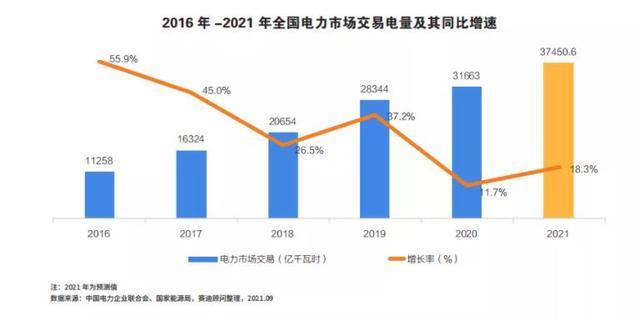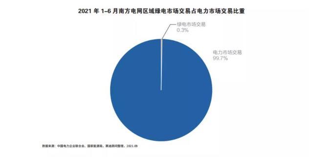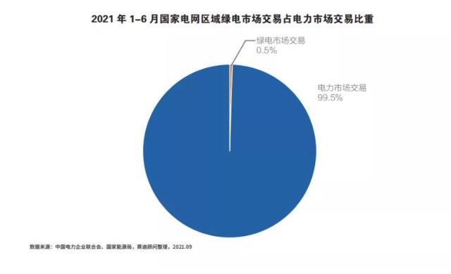 隨著電力消費(fèi)需求穩(wěn)定上漲,電力交易市場發(fā)展迅速,呈現(xiàn)逐年上升趨勢,截至2021年6月,全國各電力交易中心完成市場交易電量17023億千瓦時,同比增長41.6%,而首次綠電交易規(guī)模僅為79.35億千瓦時,占比不足0.5%。