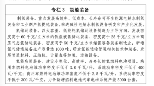 (三)氫能裝備。搶抓氫能產(chǎn)業(yè)進入市場化臨界點戰(zhàn)略性機遇,依托豐富的能源資源和氫能應(yīng)用場景,強化氫能裝備技術(shù)創(chuàng)新,重點發(fā)展電解水制氫裝備、工業(yè)副產(chǎn)氫提純裝備、氫能儲運裝備、氫燃料電池等裝備制造業(yè),實現(xiàn)氫能裝備制造新突破。