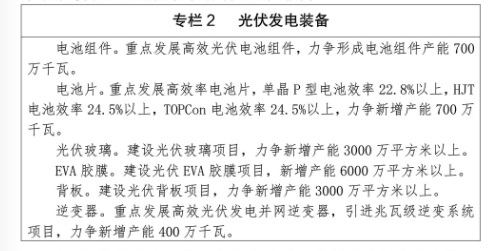 (二)光伏發(fā)電裝備。依托光伏材料產(chǎn)業(yè)優(yōu)勢,鼓勵多晶硅、單晶硅企業(yè)延伸產(chǎn)業(yè)鏈條,發(fā)展下游電池片、電池組件。積極引進光伏玻璃、背板、EVA膠膜、逆變器等項目,打造光伏制造全產(chǎn)業(yè)鏈,填補光伏裝備及配套產(chǎn)業(yè)空白,力爭形成與新增新能源裝機規(guī)模相匹配的光伏裝備制造生產(chǎn)能力。