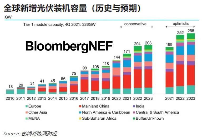 高價(jià)的成因可能是庫存的累積和硅片制造商為確保多晶硅的供應(yīng)互相間競爭。2022年將大幅新增光伏裝機(jī)容量,包括2021年的延期項(xiàng)目。
