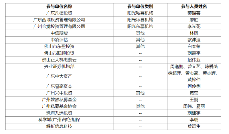 調(diào)研參與機(jī)構(gòu)詳情如下: