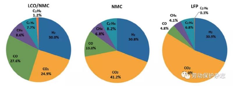 圖2 不同材料體系電池?zé)崾Э禺a(chǎn)氣占比(mol%)