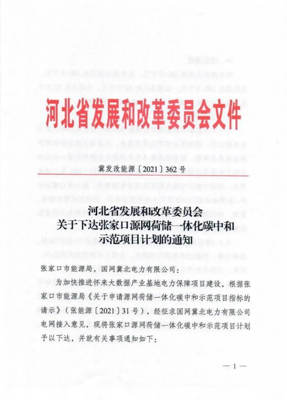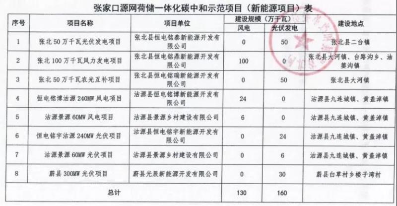 中國儲能網(wǎng)訊:河北省發(fā)展和改革委員會下達了《張家口源網(wǎng)荷儲一體化碳中和示范項目計劃》的通知。根據(jù)文件,項目建設(shè)總規(guī)模290萬千瓦,其中張北縣風電100萬千瓦、 光伏發(fā)電100萬千瓦,沽源縣風電30萬千瓦、光伏發(fā)電30萬千 瓦,蔚縣光伏發(fā)電30萬千瓦。具體項目名單如下: