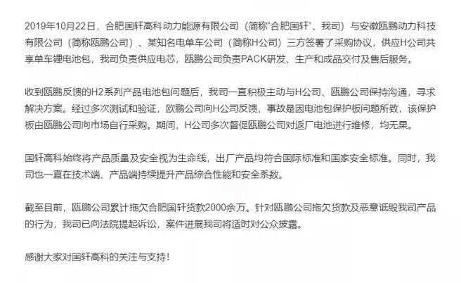 ▲國軒高科回應(yīng)與歐鵬動力糾紛的說明