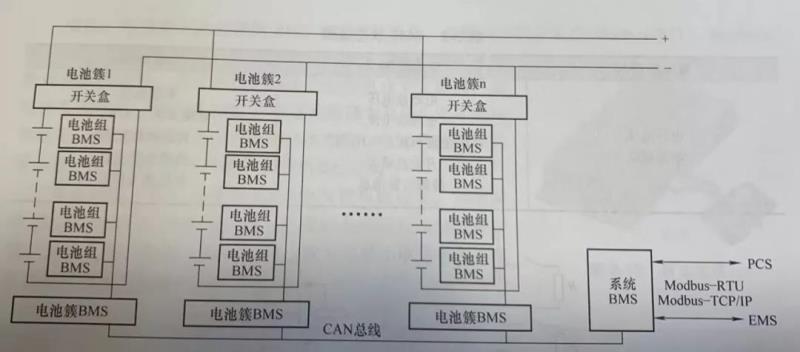 一個完整的儲能系統(tǒng)BMS由電池組BMS,電池簇BMS及系統(tǒng)BMS組成,這對于由大量電芯串并聯(lián)組成的大規(guī)模儲能系統(tǒng)而言,三級BMS的設(shè)計從最大程度上避免了電芯不均衡及其所導(dǎo)致的過充及過放。